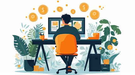 Earning an Income through Online Employment Opportunities. Young man is working at computer.