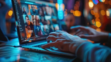 A professional attending a virtual conference with interactive networking features, symbolizing business networking and professional development online, Contemporary lifestyle scene