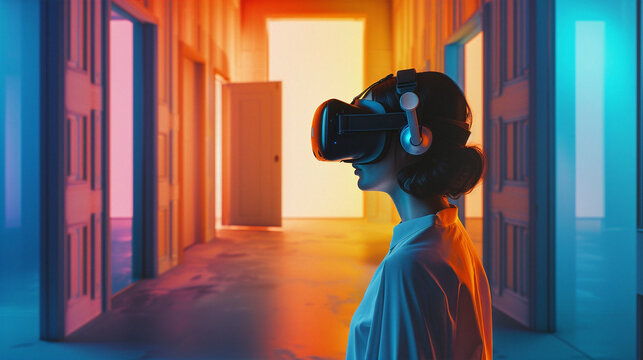 Engineer in futuristic setting designs innovative solutions, surrounded by cutting edge technology and sleek interfaces, perfect for commercial uses requiring forward thinking engineering and.