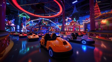 virtual reality theme park where visitors experience rides and attractions through immersive VR headsets