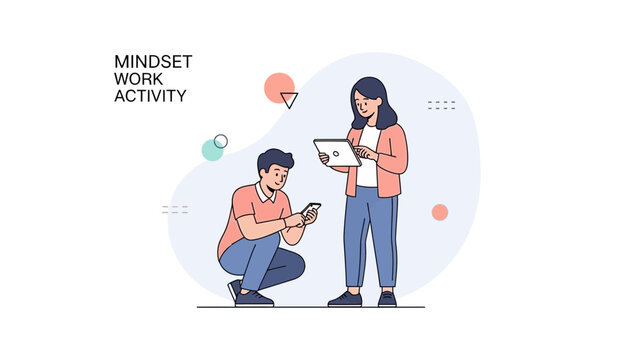 digital communication and teamwork focused on mindset and activity innovative illustration