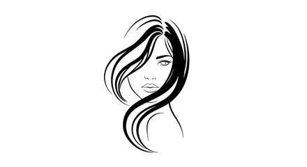 Elegant Woman's Face with Flowing Hair, Minimalist Black and White Line Art