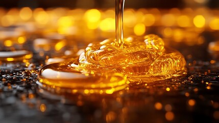 Close-up of sunflower oil viscosity with flowing movement in a bowl