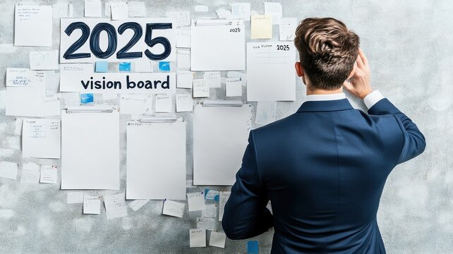 Creating a vision board for 2025 goal setting personal growth office inspiration optimistic environment motivational viewpoint