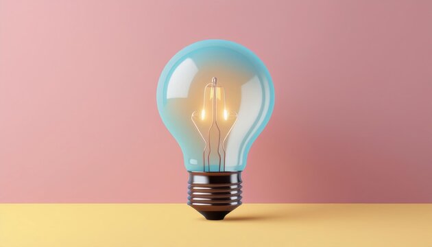 Creative light bulb glowing against a pink and yellow background, representing ideas, innovation, inspiration, and creativity.