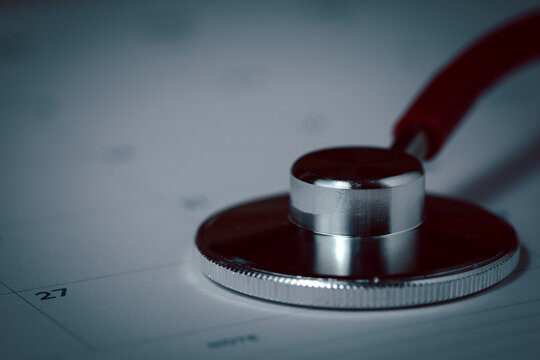 Stethoscope on calendar. Concept of health check reminders, medical planning, healthcare schedule, doctor appointments, and wellness management.