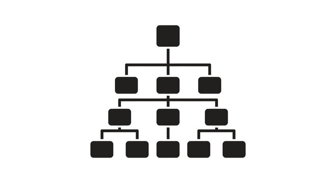 a simple black tree diagram illustration showing hierarchical structure with branching nodes a distinct silhouette