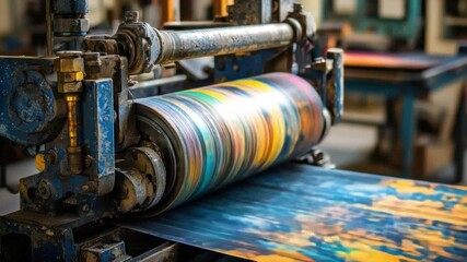 Colorful printing machine at work showcasing vibrant ink flow and creative artistry in a modern printing facility