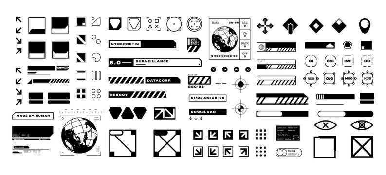 Futuristic streetwear cyberpunk interface element technology graphic vector design template