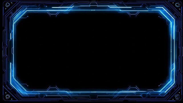 Luminous blue circuit frame on black background provides a technological feel and style