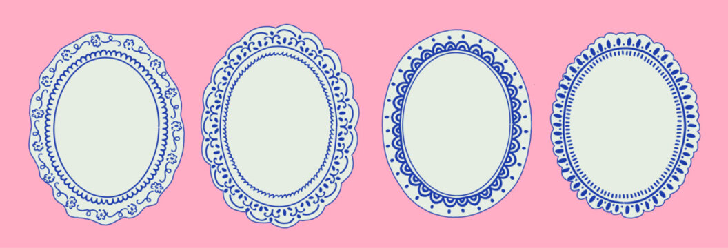 Set of colorful frames with wavy edges. Ornaments, patterns. Doodle, cute retro borders. Design for card, invitation, cover, packaging. La dolce vita style. Sticker. Quote box. Logo.