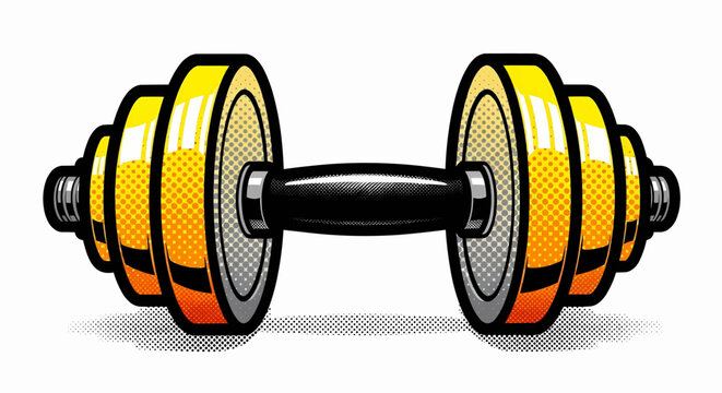 Yellow dumbbell pop art vector illustration for sports motivation and dynamic energy in fitness workouts