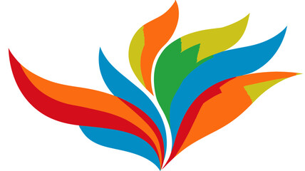 Dynamic abstract colorful graphic design with stylized leaves or flames, symbolizing energy, creativity, and growth. Vector illustration.