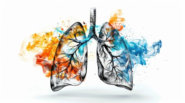 A vibrant and colorful artistic tattoo design of the lungs, depicted with intricate patterns and bold colors, symbolizing health and vitality