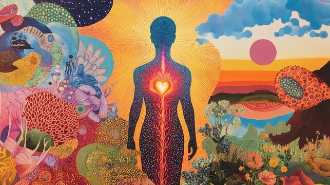 Mind Body Reset Colorful illustration of human emotions and vitality. peaceful wellness retreat