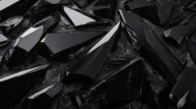 Scattered unpolished obsidian shards with sharp edges forming a dark textured background