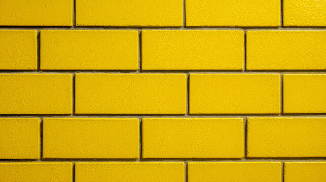 Vibrant yellow brick wall pattern with uniform rectangular shapes creating a bright and bold textured background for modern architectural or design concepts