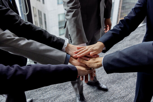 円陣 手を重ねる ビジネスイマージ