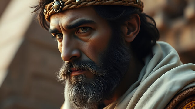 A hyper-realistic cinematic portrait of Joseph, the biblical Hebrew man who became the vizier prime minister of ancient Egypt through his gift of dream interpretation.