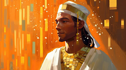 Colorful painting art portrait of Joseph in Egypt. Old testament. Christian illustration.