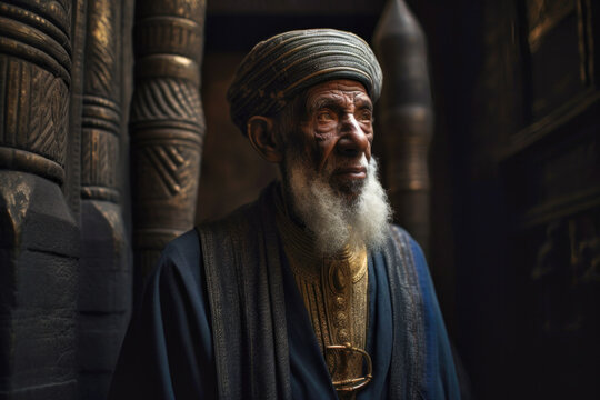 Portrait of old bearded vizier inside ancient Egyptian temple tomb (Generative AI)