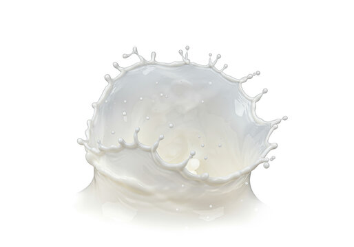 spectacular eruption of ultra-transparent milk, frozen mid-air as a hyper-detailed crown splash of droplets and creamy mist against a transparent studio backdrop. Concept of volatile fluid dynamics