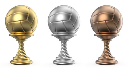 Gold, silver and bronze trophy cup VOLLEYBALL 3D