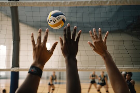 cropped hands of players practicing volleyball