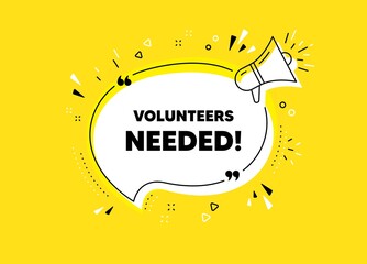 Megaphone with volunteers needed speech bubble. Loudspeaker. Banner for business, marketing and advertising. Vector illustration.