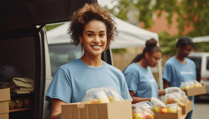 Cheerful volunteer assisting in community engagement