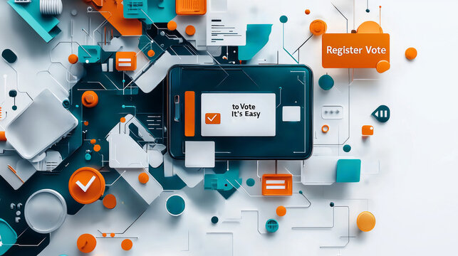 Call to Action: A striking megaphone, emblazoned with the empowering word "VOTE," stands poised against a vibrant blue backdrop. A direct, compelling visual.