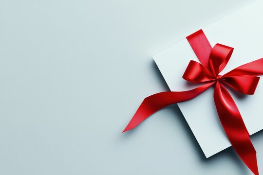 Blank, white gift voucher with red ribbon bow or empty gift signboard