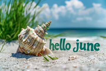 First day of summer concept with heart symbol on sandy beach