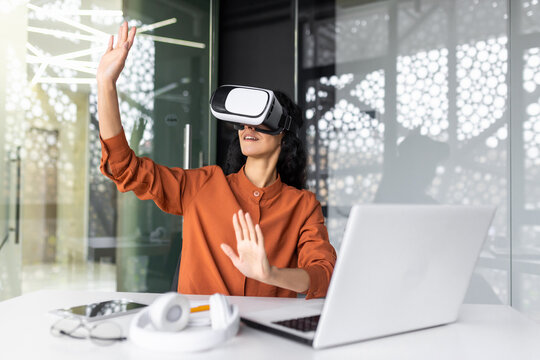 Person In Formal Attire Using Immersive Technology Device, Indicating With Hand, Transparent Background