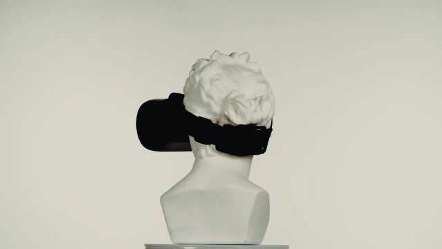 amazed teen girl wear vr glasses using technology for education in virtual reality, virtual world. Banner of child girl with virtual reality vr headset, studio portrait with copy space.