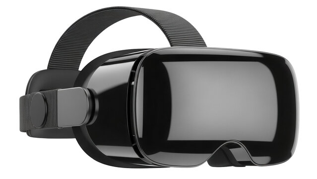 Sleek black VR headset PNG isolated on transparent background, virtual reality device for gaming and immersive experiences