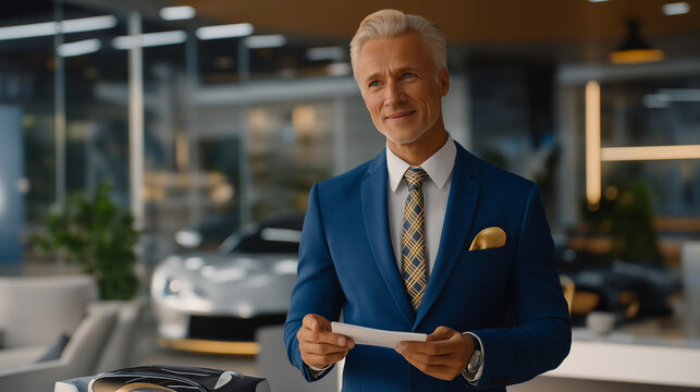 Elegant sale promotion with confident woman in black suit