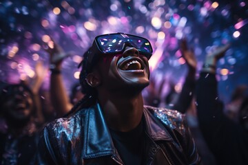 Man wearing virtual reality headset surrounding at Concert Festival, Generate with Ai.
