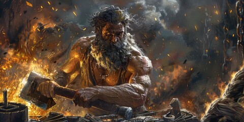 Iconic figure of Hephaistos, known as Vulcan in Roman mythology, revered as the god of fire, craftsmanship, and blacksmiths in both Greek and Roman cultures.