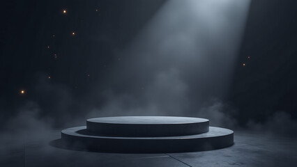 slender minimalist halloween podium stands alone dimly lit surroundings polished surface shrouded ethereal mist wafts like