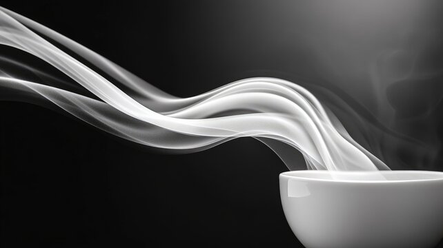 Steamy white ceramic bowl emitting aromatic smoke against black background