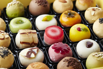 Japanese traditional confectionery wagashi on a japanese tray