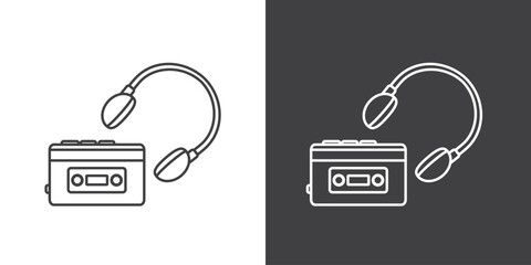 Icon of Retro cassette player with earphones. outline icons vintage records, musical devices and equipments for playing music from cassettes. Walkman isolated on white background. walkman icon vector