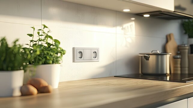 A modern wall socket illuminated softly against a dark backdrop, showcasing a sleek and minimalist design for contemporary interiors.