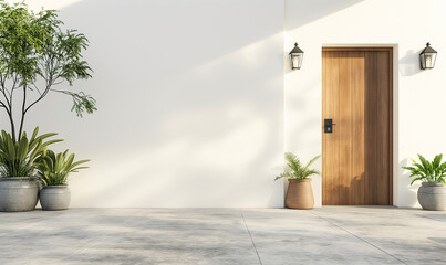 planters in front of wall