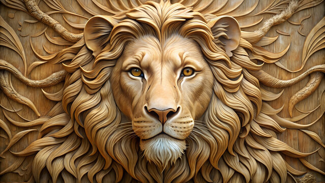 Beautiful Lions 3d relief wallpaper. Mural wallpaper. Wall art. AI-generated