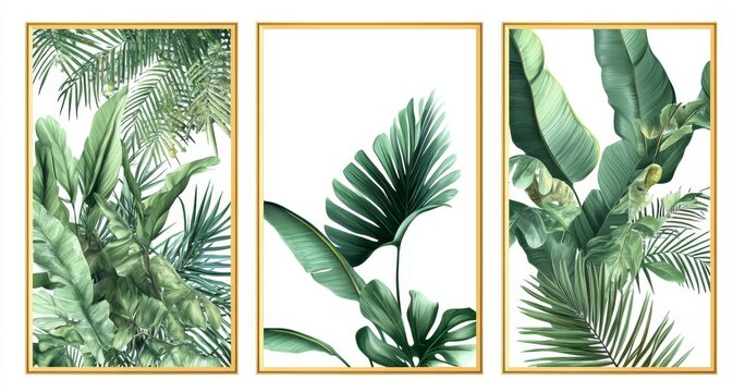 An abstract foliage set of canvases. Artistic design for plants.