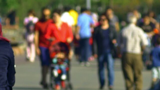 An overhead view of a group of people wandering through an open space. The scene is set in a city, and the people appear to be going about their daily activities.