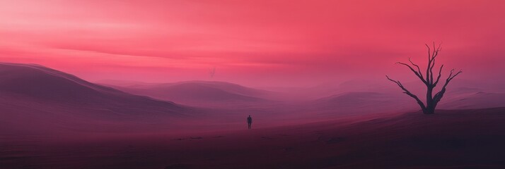 Misty mountainous landscape for travel promotion banner