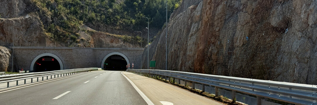 Mountain Trail Adventure: A solitary hiker, with a backpack, journeys along a scenic mountain trail, with lush green grass and trees, under a sky of wispy clouds.